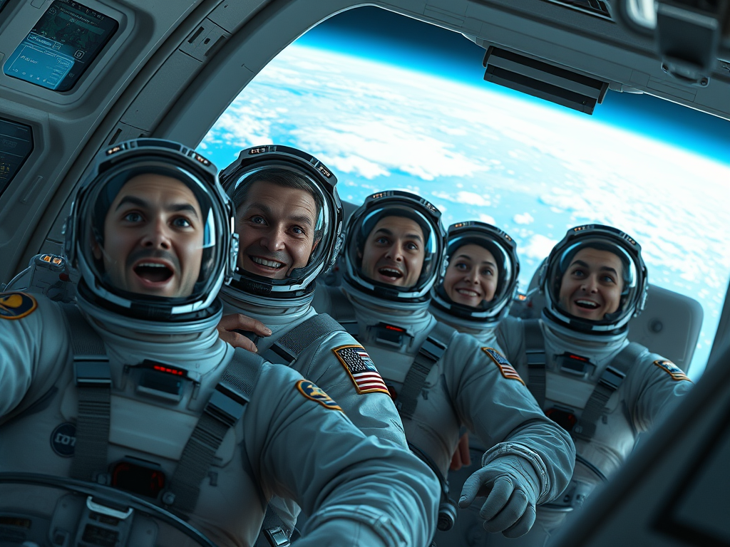 Guardando questi civili orbitare intorno al nostro piccolo pianeta blu, non posso fare a meno di riflettere: la vita quotidiana, con le sue scadenze, i suoi imprevisti e le sue assurdità, è un po’ come un lancio spaziale in miniatura. Crediamo di sapere cosa ci aspetta, pianifichiamo, controlliamo, ma alla fine… l’ignoto decide sempre le regole. E forse, come gli astronauti, dovremmo imparare a godere di questo caos, ridendo mentre orbitano sopra di noi i sogni e le possibilità.